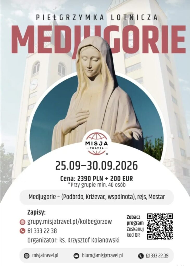 Pielgrzymka samolotowa do Medjugorie w dn. 25 -30 09.2026 r.