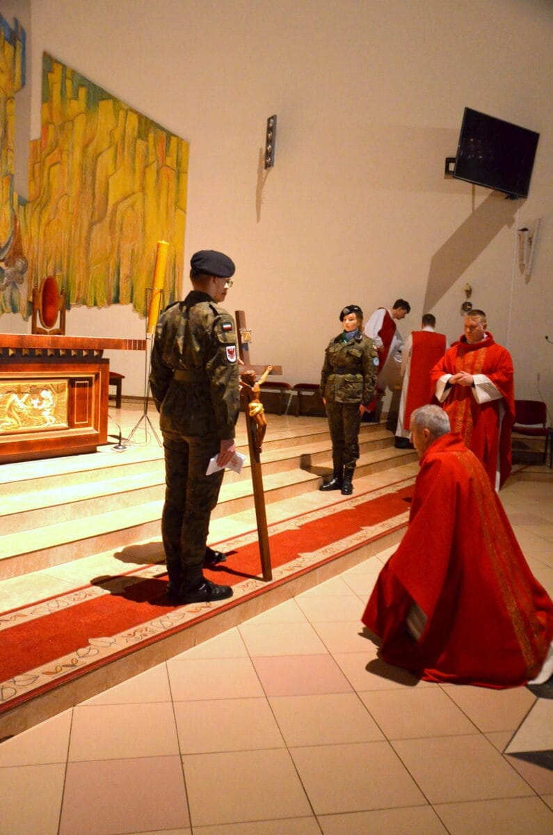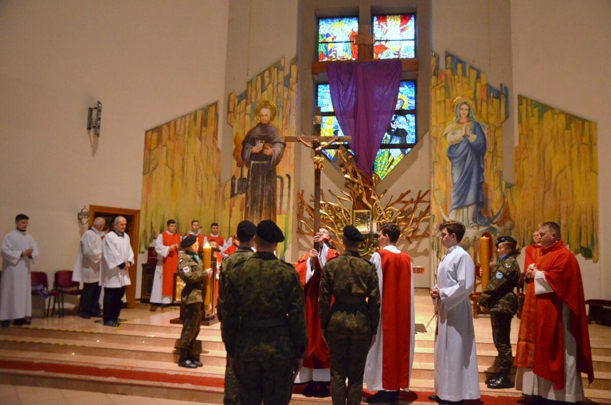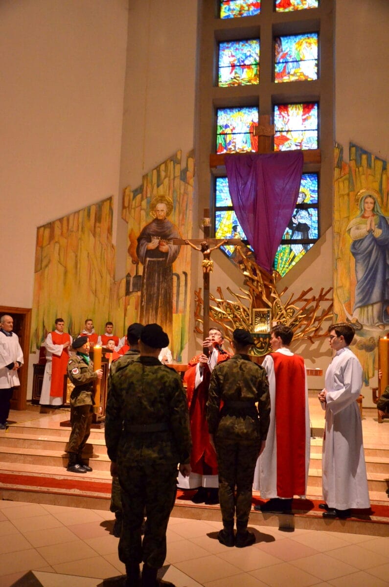 Stałym elementem jest liturgia słowa – przywołuje ona słowa proroka Izajasza, który pisał, że Mesjasz będzie cierpiał za ludzi, fragment Psalmu 31 oraz czytanie z Listu do Hebrajczyków. Następnie odczytywana jest Ewangelia, a dokładnie – jeden z fragmentów opisujących mękę Jezusa. Po tym etapie odmawiana jest modlitwa wstawiennicza, w której Kościół poleca Bogu cały świat (wiąże się to z przekonaniem, że Jezus zbawił wszystkich). Kolejnym etapem jest adoracja krzyża, w czasie której przedstawienia konającego Chrystusa zostają odsłonięte. Chociaż tego dnia nie są odprawiane msze święte, kapłan po zakończeniu liturgii słowa rozdaje komunię.
