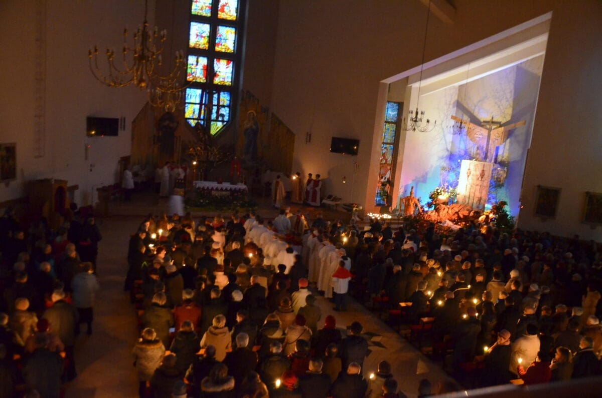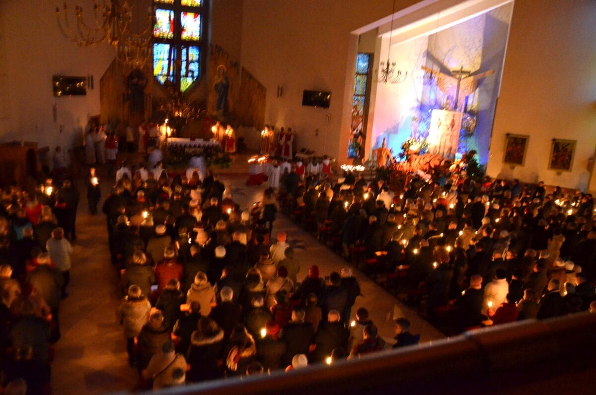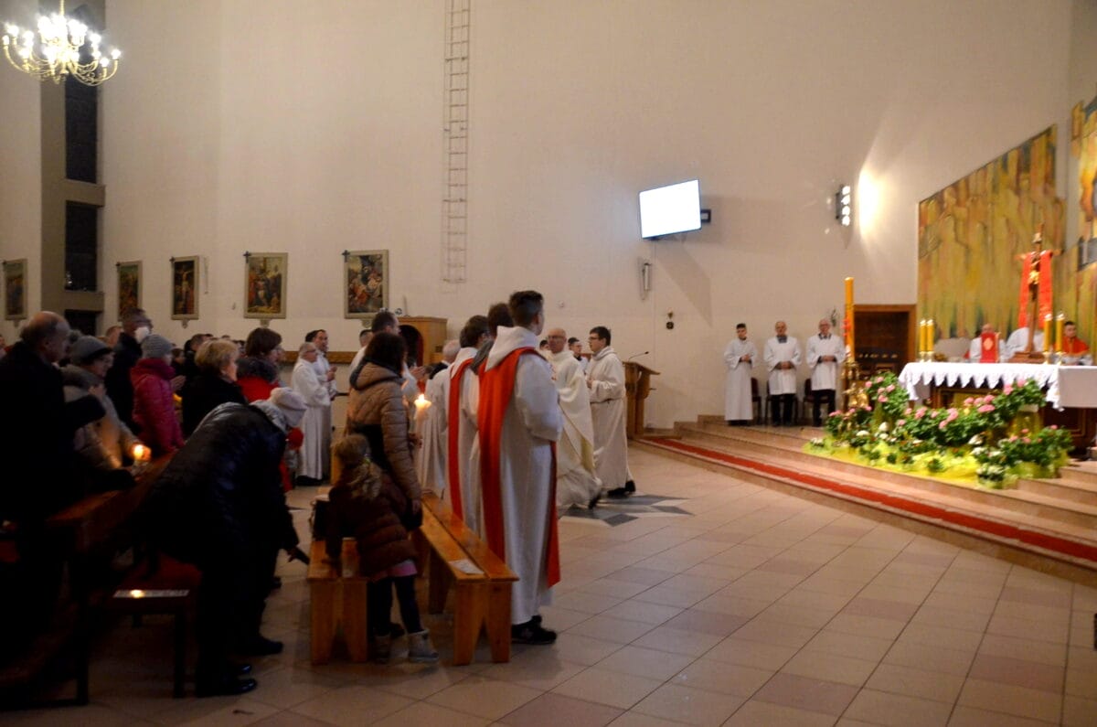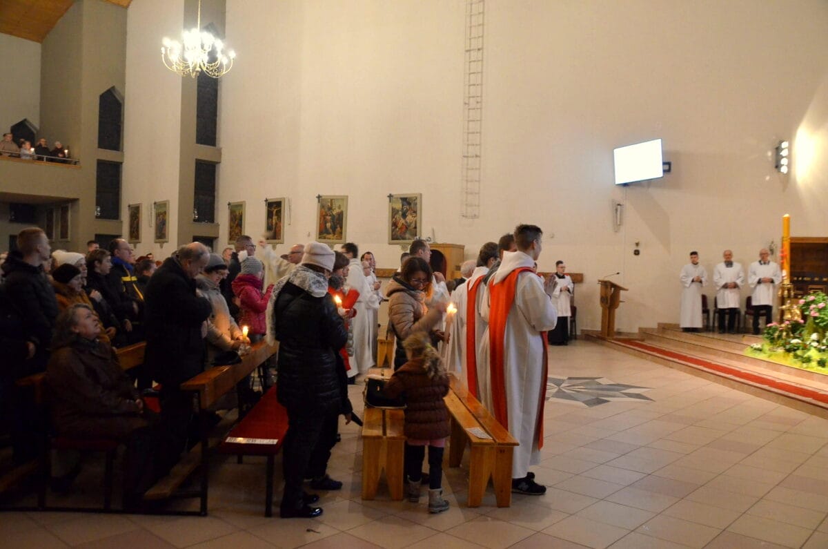 Na zakończenie Liturgii odbywa się procesja rezurekcyjna, która już tej nocy obwieści światu radość ze zwycięstwa Zmartwychwstałego Chrystusa, które rozprasza mroki nocy. W naszej parafii procesja odbywa się o świcie, w porze gdy Maria Magdalena spotkała Zmartwychwstałego i ten zwyczaj jest bardziej powszechny w tradycji polskiej.