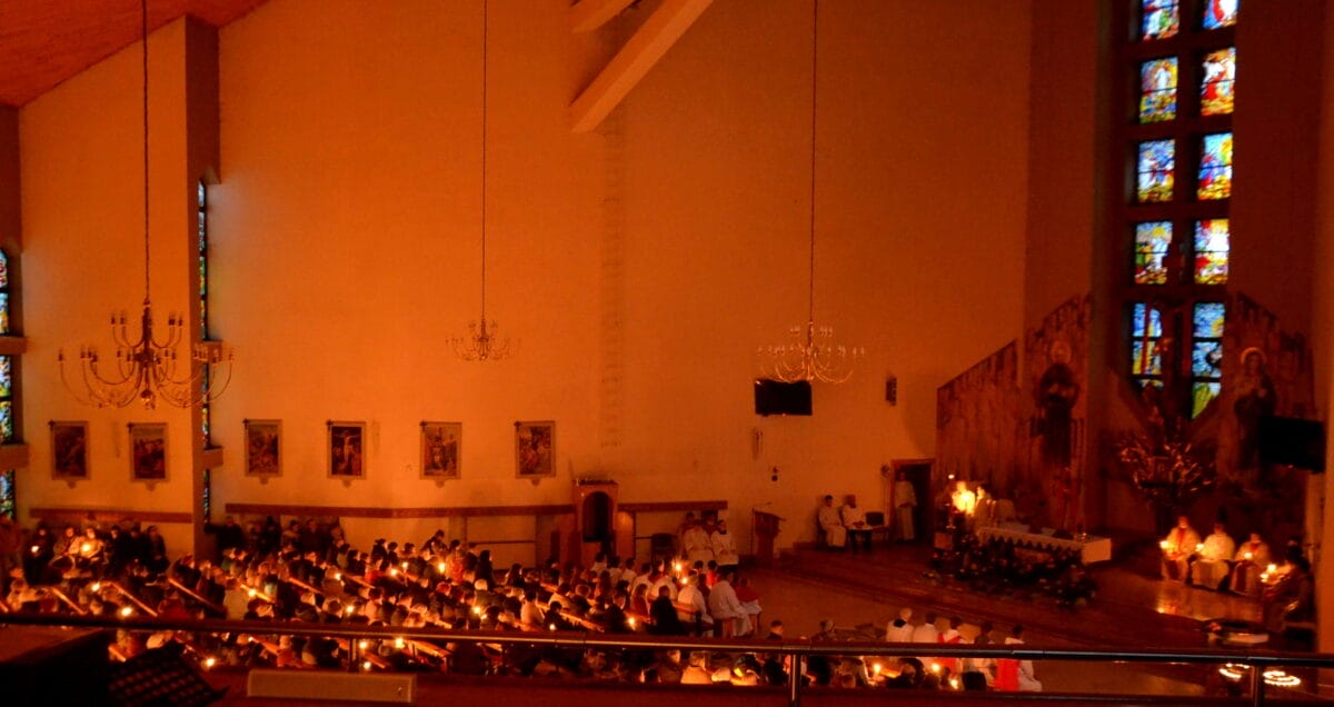 Celebrację Wigilii rozpoczyna znak światła. Procesja liturgiczna udaje się w całkowitej ciszy i ciemności na zewnątrz kościoła, gdzie powinno być rozpalone duże ognisko. Światło jest symbolem Chrystusa Zmartwychwstałego, które rozświetla swoją Paschą mroki grzechu i śmierci, które spowijały ludzkość.