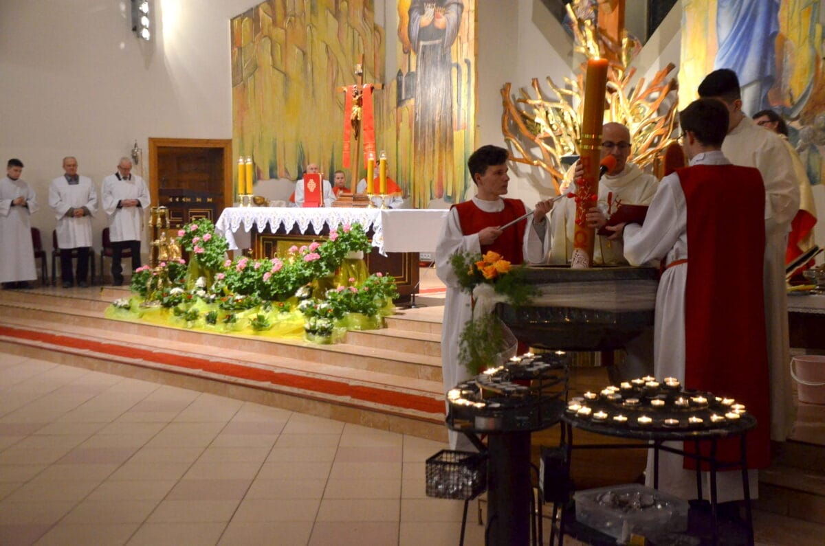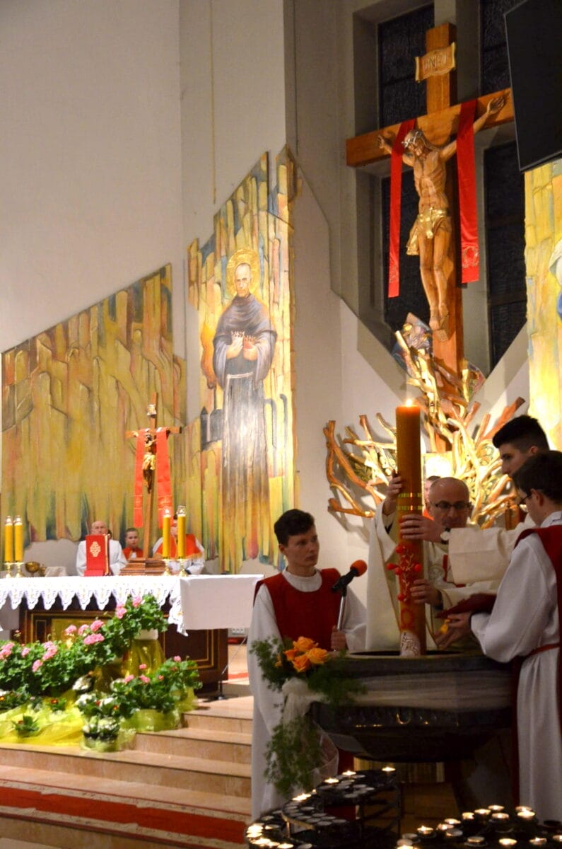 Momentem, do którego przygotowywaliśmy się przez cały Wielki Post, będzie odnowienie przyrzeczeń chrzcielnych. Jest to niejako ponowienie tego przymierza, które zawarliśmy kiedyś z Chrystusem w momencie chrztu. Na ten moment zapalimy również nasze świece, symbol wiary, która od chrztu w nas stale płonie. Niejako utrwaleniem i przypomnieniem zanurzenia w źródle chrzcielnym, będzie dla nas wszystkich pokropienie wodą, którego kapłan na koniec dokona.