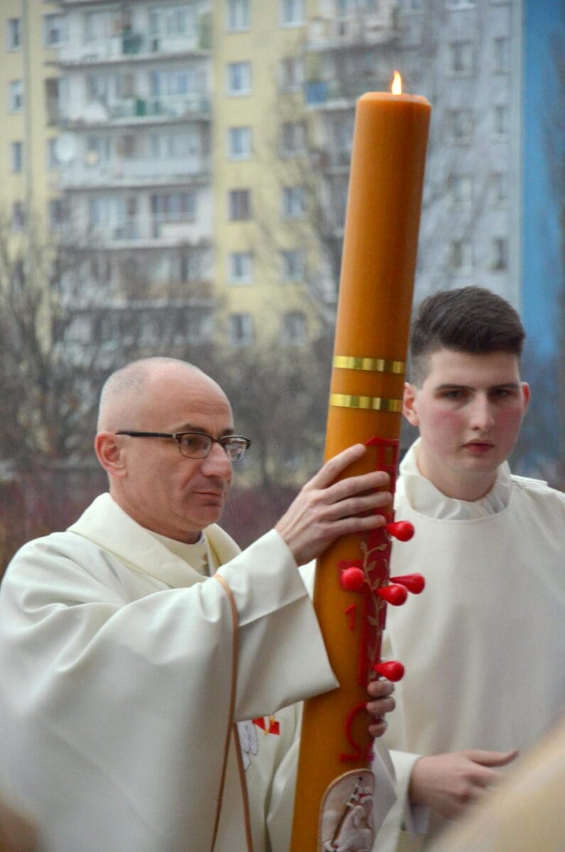 Po zapaleniu Paschału od poświęconego ognia, kapłan intonuje śpiew „Światło Chrystusa”, a wierni, podobnie jak Izrael prowadzony do Ziemi Obiecanej przez Słup Ognia, udają się procesyjnie do kościoła, krocząc za płonącą świecą paschalną. Blask Zmartwychwstałego prowadzi wiernych przez ciemności nocy w kierunku kościoła, gdzie sami odpalą swoje świece od paschalnego płomienia. Płonąca świeca jest symbolem światła wiary, która od chrztu świętego płonie w ochrzczonych. Dlatego powinniśmy nawzajem dzielić się tym światłem, które zostało odpalone od paschału, podobnie jak mamy dzielić się swoją wiarą.